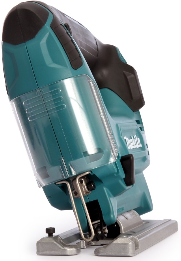 Опорна плита здатна нахилятися в обидві сторони під кутом 45. Модель так само оснащена відмінною системою видалення пилу, яка допомагає підтримувати чистоту робочого місця, а так само хорошу видимість робочої зони. Для зручності зберігання та транспортування лобзик Makita JV101DSME поставляється у зручному кейсі, виготовленому з міцного пластику.