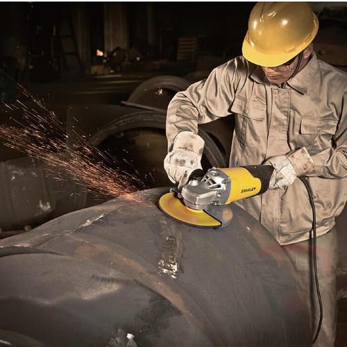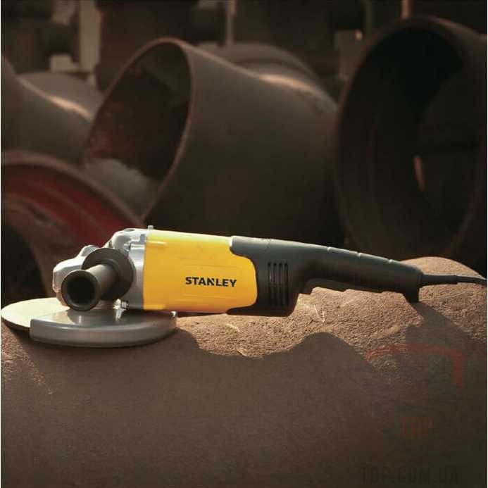 Болгарка УШМ STANLEY 2000Вт 230 мм (SL209) для проведення монтажних та демонтажних робіт. Вона активно використовується для різання, шліфування та очищення поверхонь від іржі, фарби та нерівностей. Пристрій застосовується для обробки металу, дерева, пластику та ін. Вона живиться від електромережі 220В. Оснащення товстим електрошнуром дозволяє піддавати інструмент більшим навантаженням. Захист від навантаження продовжує його експлуатаційний термін. Зручна, ергономічна форма ручки дозволяє надійно зберігати контроль над приладом під час роботи. Перфорація в корпусі призначена для постійного надходження повітря з метою охолодження внутрішніх вузлів. Захисний кожух над відрізним колом запобігає попаданню осколків та іскор у бік оператора.