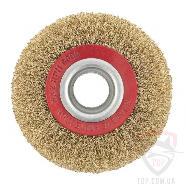Щітка дискова MATRIX 100x20 мм рифлена латунь (746589) призначена для делікатного очищення металевих поверхонь від іржі, бруду, видалення лакофарбових покриттів та зачистки зварних швів. Плоска форма щітки дозволяє обробляти матеріал у кутах, згинах та інших важкодоступних місцях.