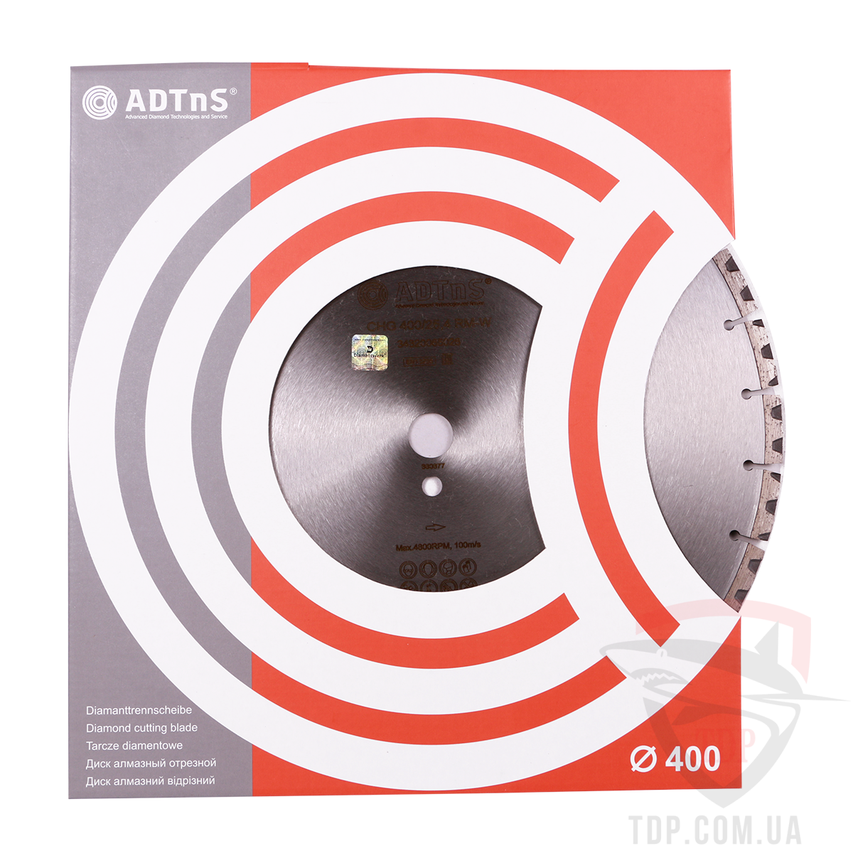 Диск алмазний по бетону ADTnS 400x25.4 CHG RM-W (34320065026) купити по вигідній ціні 3 750 грн. в магазині інструментів та обладнання ТДП "Трейд Плюс" з доставкою по Києву та всій Україні. Зателефонуйте нашому менеджеру і він запропнує товари із каталогу: чи аналог товару від виробника ADTnS із широкого асортименту продукції. Інтернет магазин ТДП доставить замовлення в Харків, Вінницю, Луцьк. Найкраща пропозиція купити Диск алмазний по бетону ADTnS 400x25.4 CHG RM-W (34320065026) в інтернет-магазині ТДП "Трейд Плюс" просто зателефонувавши нам за номером 0(800)303-900