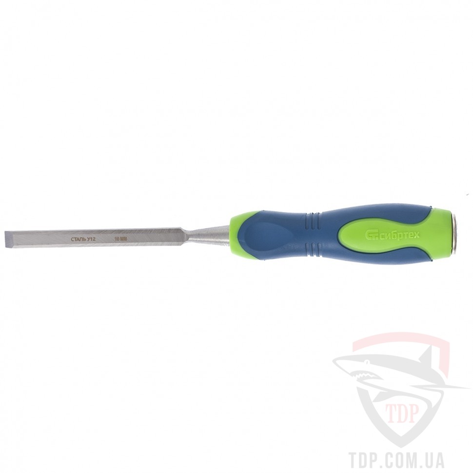 Долото-стамеска Сібртех 10 мм (24475) призначена для вибірки та зачистки гнізд, пазів, зняття фасок та інших столярних робіт. Ергономічна двокомпонентна рукоять запобігає ковзанню інструменту в руці. Металевий наконечник на ручці дозволяє використовувати молоток під час роботи.