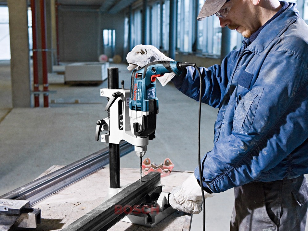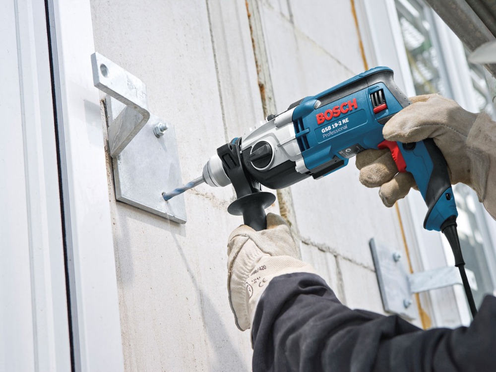 Дриль ударний BOSCH GSB 19-2 RE потужністю 850 Вт. Нова ручка дозволяє надійно вхопити дриль, а округлий наконечник запобігає обриванню кабелю.