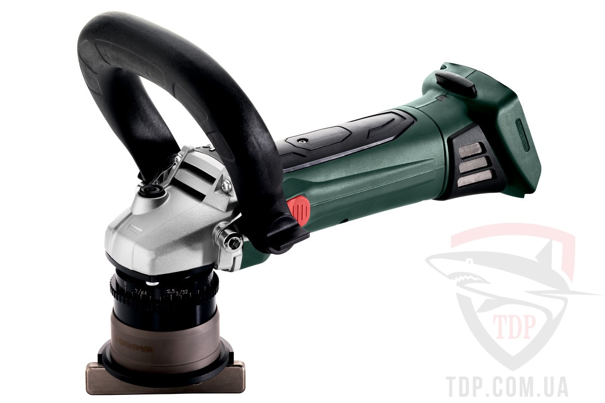 Фрезер акумуляторний кромковий Metabo KFM 18 LTX 3 RF найбільш потужний фрезер по металу для обробки кромок, який дозволяє виконувати фаски 45° до 4 мм і радіуси 2 і 3 мм. Поверхні без оксидів та задирок оптимально підготовлені до нанесення порошкового або лакового покриття для максимального захисту від корозії. Управління одним натисканням кнопки завдяки запатентованому механізму регулювання фрези без інструменту з кроком 0.1 мм. Точки фіксації скорочують час регулювання та запобігають ненавмисному перемиканню глибини фрезерування під час роботи. Вузька фрезерна головка для робіт усередині труб, в отворах діаметром від 13 мм та на зовнішніх контурах.