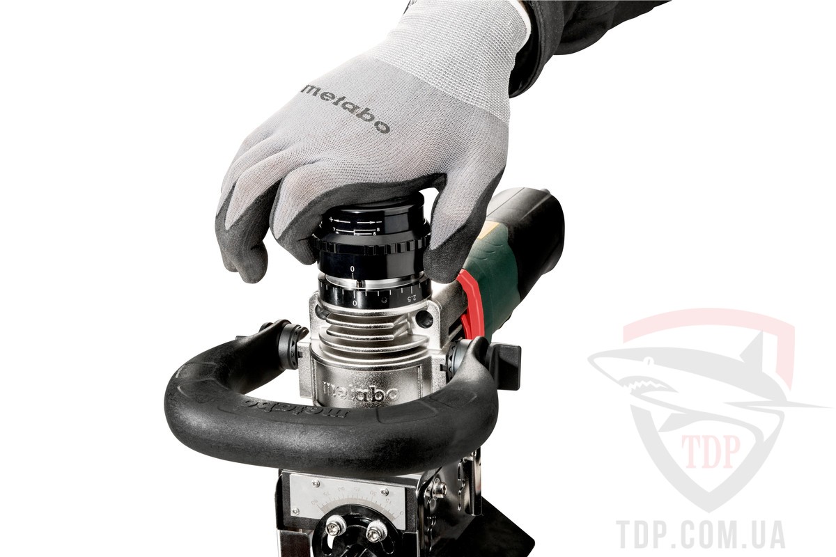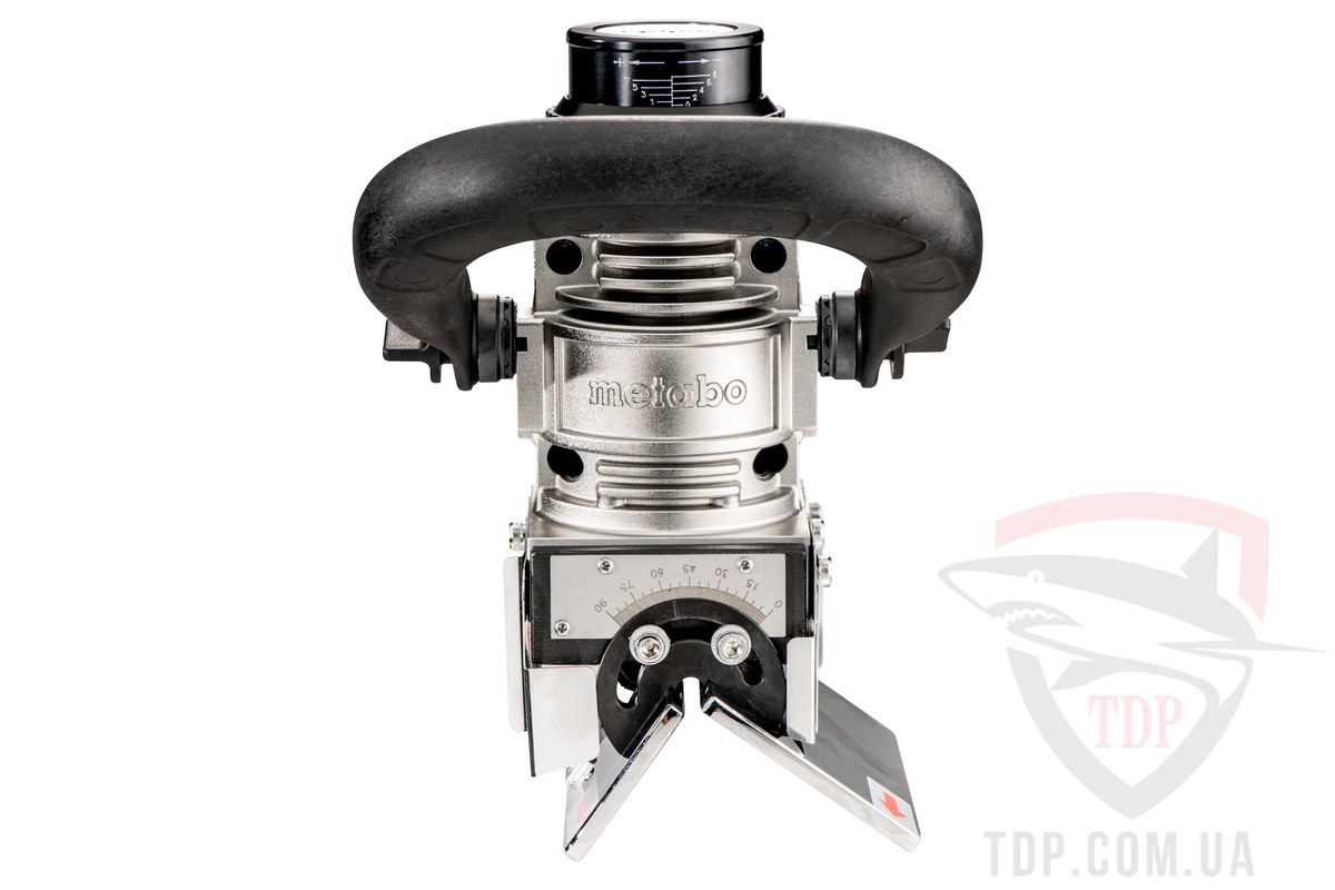Контрольоване виконання робіт завдяки напрямним пластинам з великою площею. Опорний ролик для ведення труб полегшує підготовку кромок під зварювання. Передня рукоятка, яка регулюється без використання інструментів для досягнення безпечного та рівномірного ведення інструменту. Двигун Metabo Marathon потужністю 1600 Вт із запатентованим захистом від пилу для тривалого терміну експлуатації. Електронний захист від перевантажень, м'який пуск та захист від повторного пуску. Захист користувача за допомогою бічних пластин для відведення стружки.