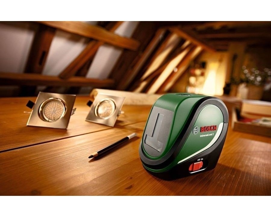 Також Даний прилад оснащений потужними діодами, які гарантують видимість лазерних ліній навіть при яскравому світлі. Bosch UniversalLevel 2 SET має більшість переваг у внутрішніх будівельних роботах. Кут розкриття 120 градусів; Клас лазерного випромінювання 2; Час сам нівелювання.
