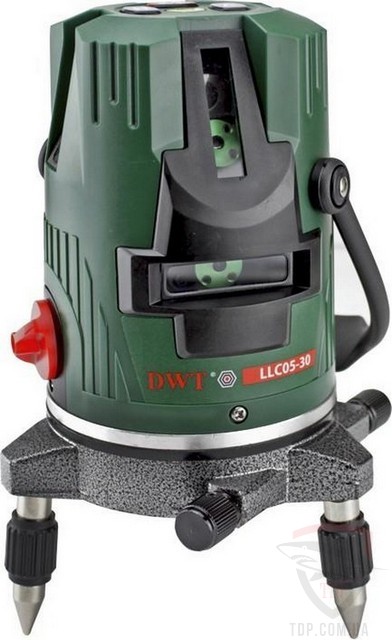Лазерний нівелір DWT (LLC05-30) – виконує розмітку променями. Широко застосовується в установці дверей та вікон, зведення перегородок. Інструмент оснащений 5 проектованими променями. Також лазерний нівелір DWT має функцію автоматичного вирівнювання, і діодом OSRAM. Лазер класу 2. Робочий діапазон становить – 30 мм. Інструмент легкий, зручний та компактний. Вага складає – 0.8 кг.