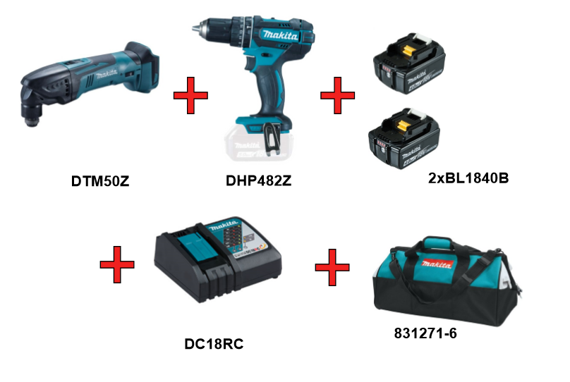Набір інструментів Makita LXT-Promo-3 є чудовим подарунком для домашнього умільця та професійного майстра. Такий комплект буде чудовим помічником при ремонтних роботах. Набір складається з акумуляторного мультитула Makita DTM50Z, акумуляторного дриля-шуруповерта Makita DHP482Z, двох акумуляторних батарей, зарядного пристрою та місткої міцної сумки.