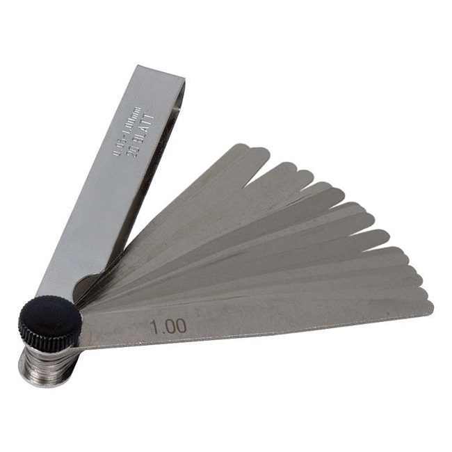 Набір щупів для вимірювання зазорів 20шт MIOL 15-200 - Набір вимірювальних щупів складається з пелюсток закріплених у сталевій обоймі, призначених для точного вимірювання зазорів між деталями. Кожна пелюстка маркована його точним розміром і виконана з полірованої загартованої сталі.