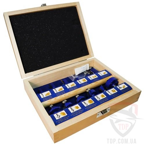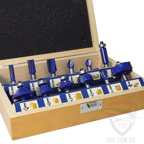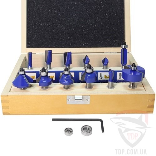 S&R для твердої деревини 12шт (216904012) складається з фрези з хвостовиком діаметром 8 мм. Комплект поставляється у зручному дерев'яному футлярі. Фрези виготовлені із високовуглецевої сталі, а ріжучі кромки - із загартованого карбіду вольфраму. Такий підбір матеріалів забезпечує високу якість обробки та тривалий термін служби оснащення. Для зручності у футлярі біля кожної фрези нанесено схематичне зображення різу по дереву. Крім того, в комплект входить для змінних підшипника – 9.5 та 12.7 мм – та шестигранний ключ.