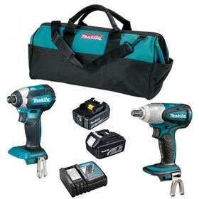 Набір інструментів Makita LXT-Promo-3 є чудовим подарунком для домашнього умільця та професійного майстра. Такий комплект буде чудовим помічником при ремонтних роботах. Набір складається з акумуляторного ударного гвинтоверта Makita DTD153Z, акумуляторного дриля-шуруповерта Makita DHP480Z, двох акумуляторних батарей, зарядного пристрою та місткої міцної сумки.