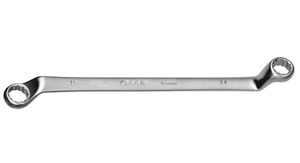 Ключ накидного типу S&R для швидкого та ефективного монтажу або демонтажу болтових елементів кріплення із шестигранною головкою. Даний ключ має колінчастий переріз з двома кільцевими зівами і відмінностями в діаметрі. Цей монтажний інструмент оптимально простий у використанні та ергономічний при захопленні долонею. Вигнуту форму можна пояснити як забезпечення легкого доступу до елементів кріплення у важкодоступних місцях. Два кільцевих зів ключа з дванадцятикратною робочою поверхнею для більш міцної зчіпки з деталлю і запобігання ефекту деформації граней.
