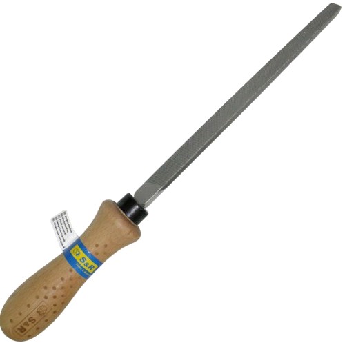 Напилок трикутний S&R для заточування, зняття задирок, обпилювання пазів та отворів різних металевих виробів. Напилок має особисту насічку, яка нанесена на його робочі грані. Рукоятка виготовлена з дерева, яка покрита безбарвним лаком, він захистить деревину від розсихання, її форма розроблена з урахуванням ергономічності для комфортного використання при тривалій інтенсивній роботі. виготовлений із сталі з великим вмістом вуглецю так що можна не турбуватися за швидке зношування полотна