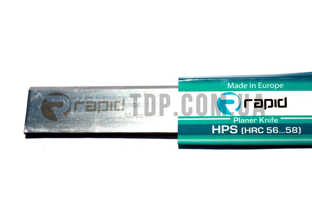 Його простіше профільувати і не потрібно так часто заточувати, навіть якщо температура буде вищою за 520 градусів. Серія Rapid HPS була спеціально розроблена для деревообробки. Ножі Rapid HPS розраховані для роботи з м'якою та середньою твердістю деревиною, для твердих порід дерева краще використовувати ножі зі сталі HSS. Твердість ножів 56 HRC. З багатьох відгуків можна відзначити, що у ножів Rapid стали HPS велика стійкість до ударних навантажень. Обрізання ножів за розміром замовника.