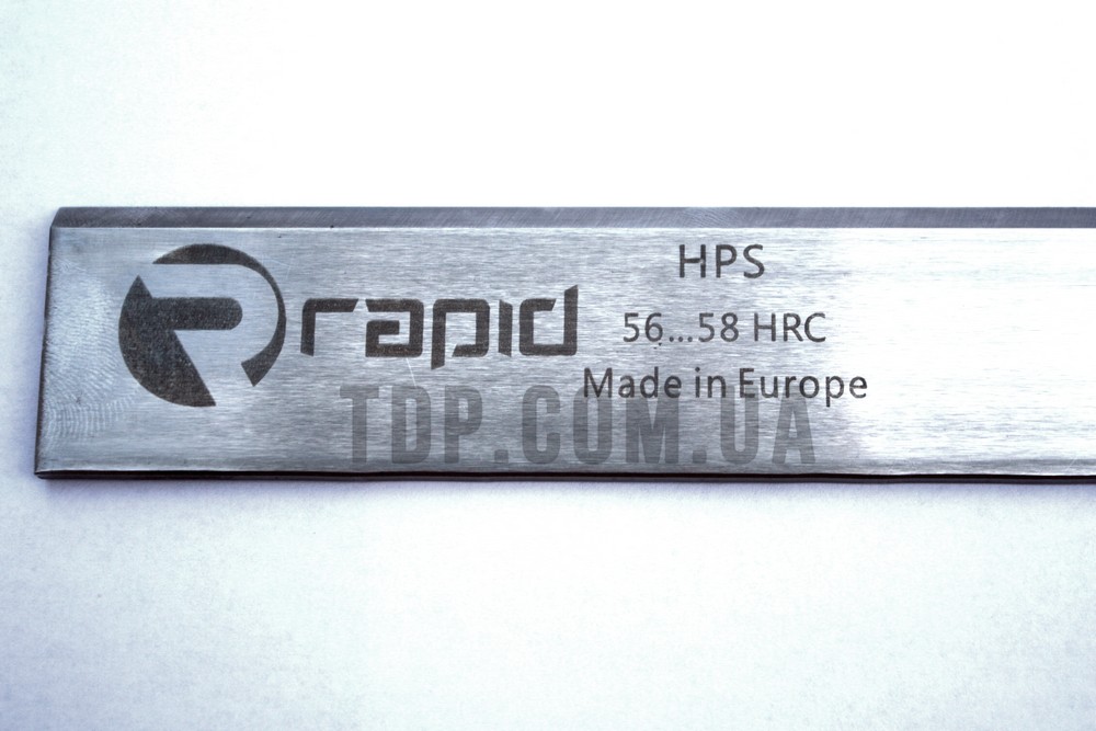 Його простіше профільувати і не потрібно так часто заточувати, навіть якщо температура буде вищою за 520 градусів. Серія Rapid HPS була спеціально розроблена для деревообробки. Ножі Rapid HPS розраховані для роботи з м'якою та середньою твердістю деревиною, для твердих порід дерева краще використовувати ножі зі сталі HSS. Твердість ножів 56 HRC. З багатьох відгуків можна відзначити, що у ножів Rapid стали HPS велика стійкість до ударних навантажень. Обрізання ножів за розміром замовника.