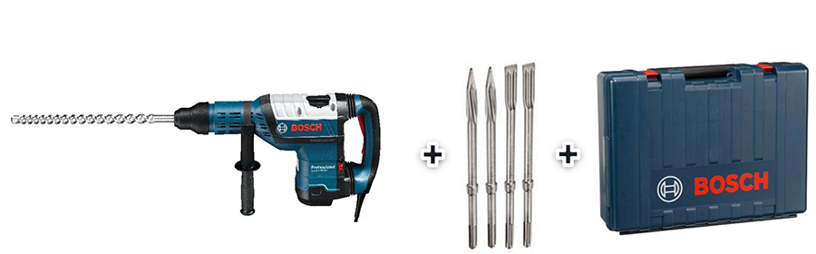 У наборі до перфоратора BOSCH GBN 8-45 DV J, додається комплект зубил SDS-max Rtec (0615990j8m) - 2 плоских зубил з шириною кромки 25 мм, 2 пікових зубил