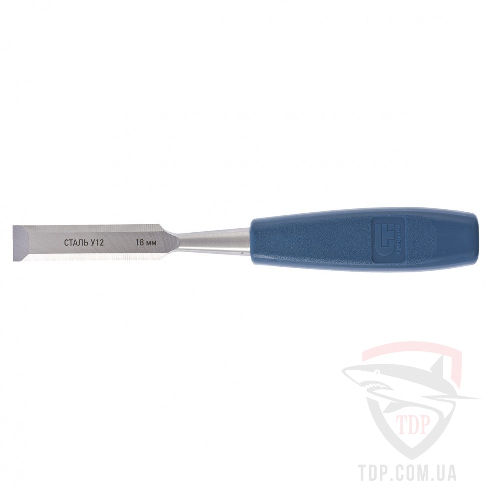 Стамеска СИБРТЕХ 18 мм пластикова рукоять (24718) виготовлена з високоякісної вуглецевої сталі твердістю 57 HRC. Рукоятка інструменту виготовлена з удароміцного пластику. Призначена для виконання точних вирізів, припасування отворів, виїмок на деревині та інших столярних робіт.