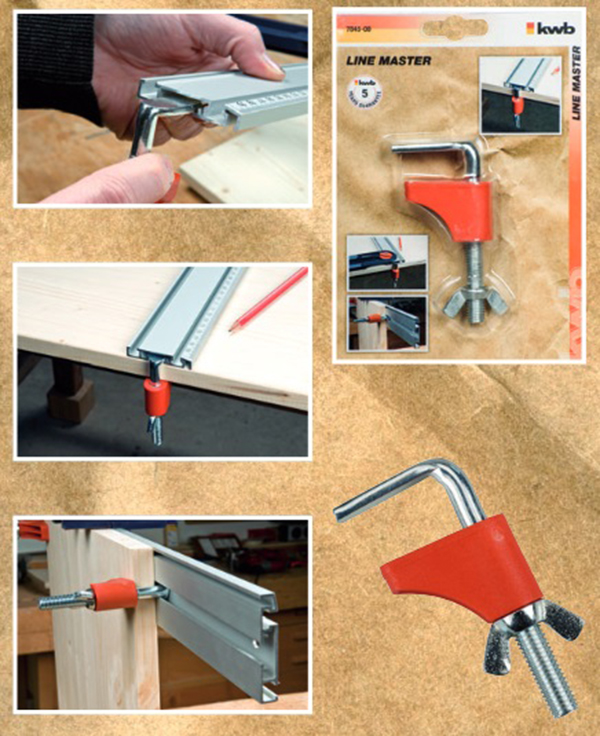 Струбцина для встановлення в паз лінійки Line Master. За допомогою неї ви зможете здійснити фіксацію всіх прецизійних лінійок Line Master на деталях. Фіксація з такою струбциною швидка і надійна, наприклад, можна затиснути заготовку при різанні за допомогою курної направляючої з лінійки Line Master. А також ви можете закріпити деталь між робочою поверхнею LINE MASTER. Затискна губка, що діє, виготовлена з армованого скловолокном пластикового матеріалу.