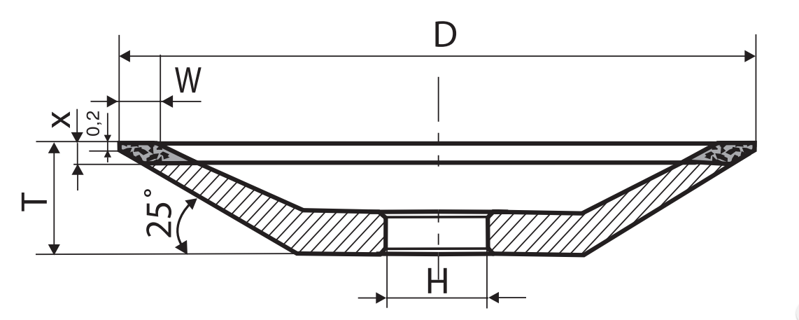 Тарілка алмазна гостра 100x3x2x10x32 (12R4) 80/63 призначена для заточування та доведення передньої поверхні зубів розгорток, фрез, дискових пилок, протяжок та іншого інструменту.
