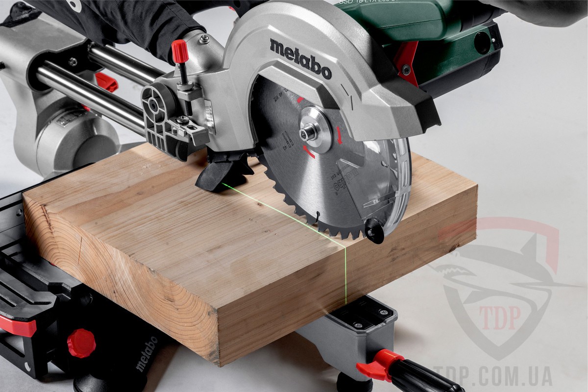 Пила торцювальна Metabo KGS 216 M GL (619260010) оснащена тяговою функцією для обробки широких заготовок. Модель відрізняється компактними розмірами та невеликою вагою, завдяки чому її легко переносити в одній руці. Для простого транспортування пилка оснащена ергономічними ручками. Для безпеки користувача інструмент оснащений блокуванням пиляльної голови. Чистоту робочого місця забезпечує ефективна система видалення стружки з інтегрованим подовженням всмоктування каналу. Для кращого огляду місця пиляння пристрій має яскравий світлодіод. Точність у роботі забезпечує технологія зеленого лазера. Пила здатна обробляти великі заготовки – для цього її оснастили розширенням столу. Усі шкали та елементи управління добре видимі та інтуїтивно зрозумілі.