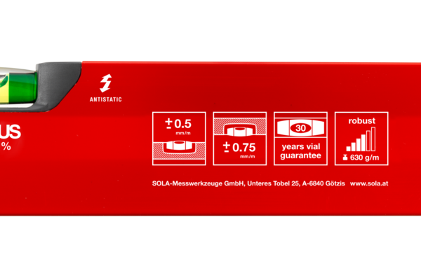 Рівень Sola (BigX80) є перевіреним часом і досвідом інструментом для вимірювання нерівностей. Як і вся продукція бренду, ця модель виготовлена з найвищою якістю. Кожна колба пройшла індивідуальну перевірку точності, тому правдивість показань ніколи не викликає сумнівів.